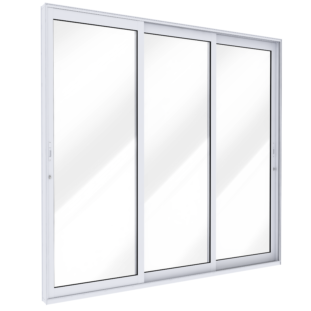 Com visual clean e alta funcionalidade, esta porta proporciona amplitude visual, iluminação natural e ventilação eficiente. As três folhas móveis em vidro temperado oferecem grande área de abertura lateral.