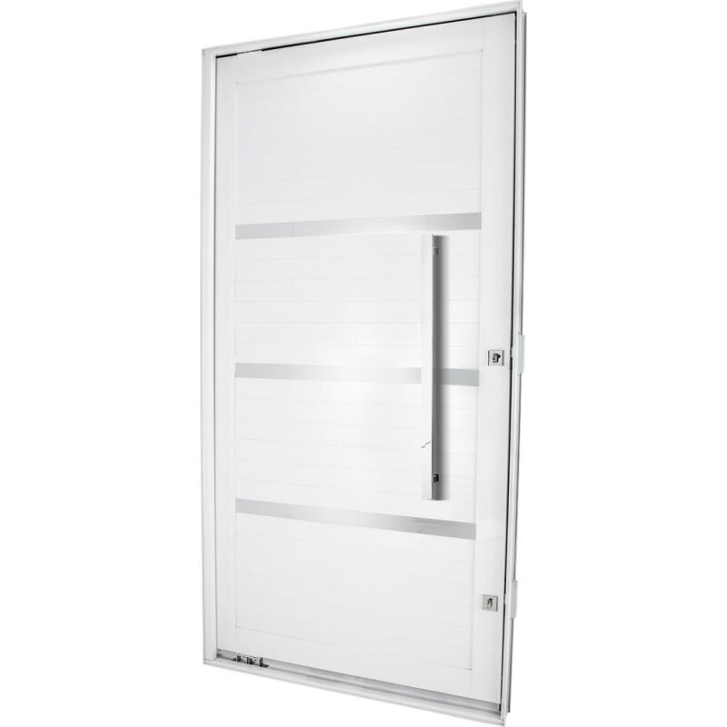 PORTA CRV LAMBRI PIVOTANTE ALUMINIO BR C/FRISO 115X223X10,5CM C/ PUXADOR OVAL NOBRE